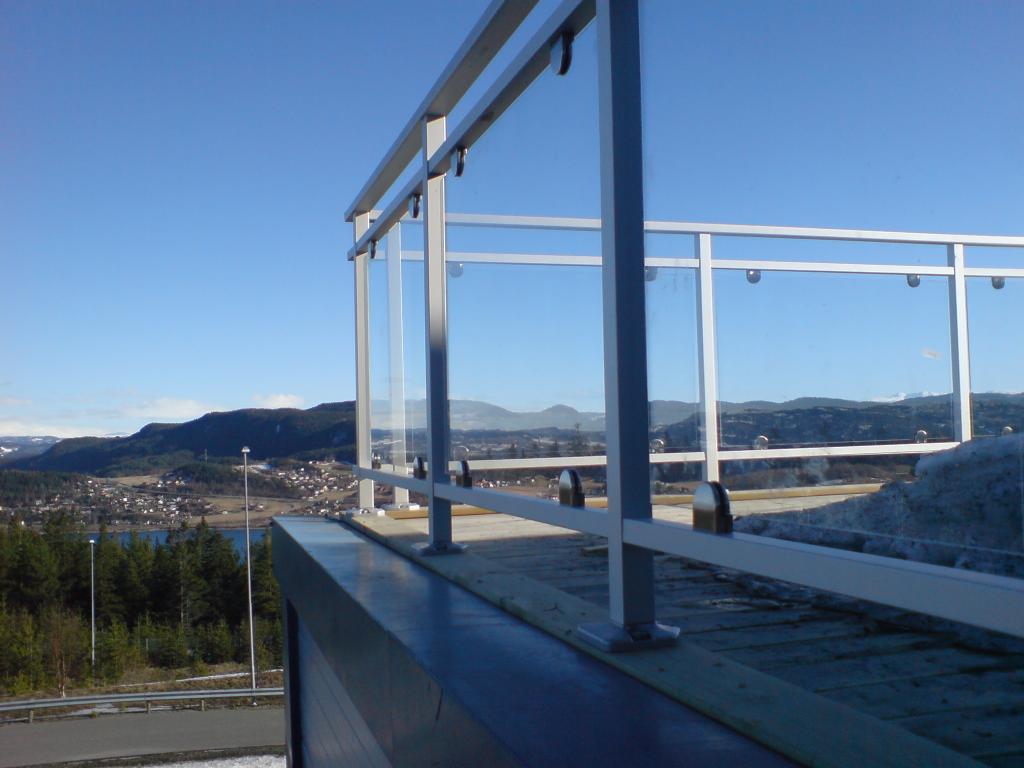 Vi produserer glassrekkverk etter mål i flere utførelser, fra rene glassrekkverk montert i skinner eller med bolter, til rekkverk med stolper og festeklemmer.