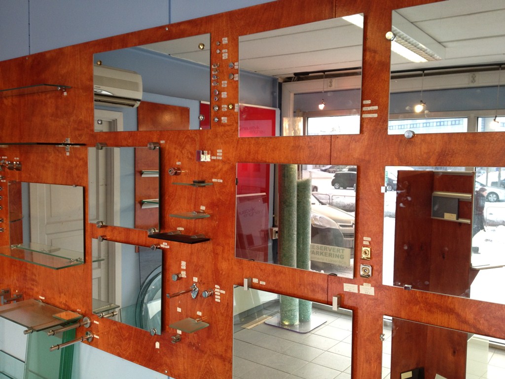 Vi har Trondheims største utvalg av speilfester i synlige og skjulte utførelser, blant annet i messing, krom, aluminium og børstet stål.